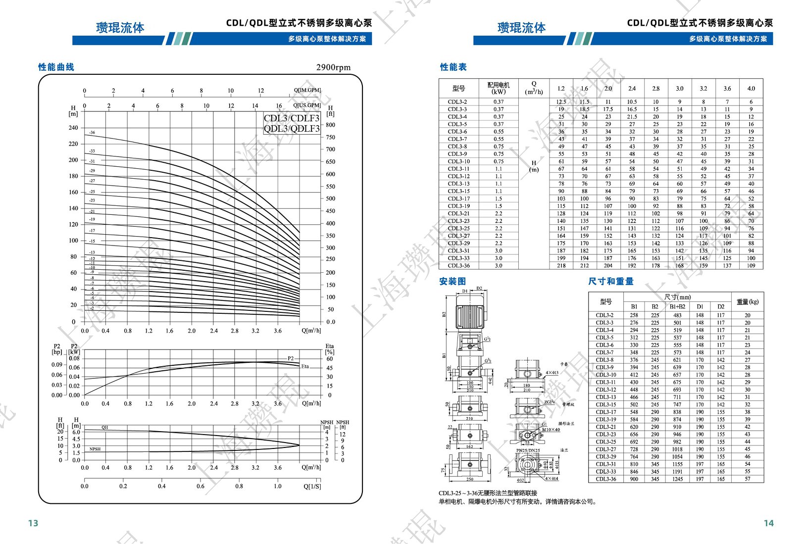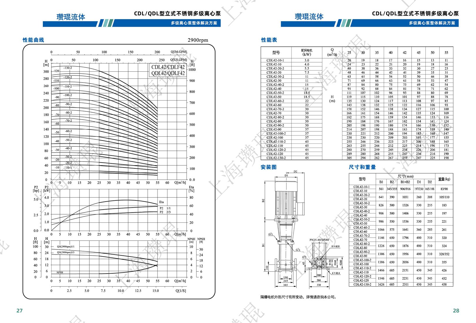CDL/QDL为安装标准电机的非自吸立式多级离心泵,电机轴通过泵头用联轴器直接与泵轴联接,拉杆螺栓将耐压简、过流部件固定在泵头和进出水段之问,泵进出水口在泵底同一直线上;本泵可根据需要配置智能保护器,对泵干转、缺相、过载等进行有效保护。